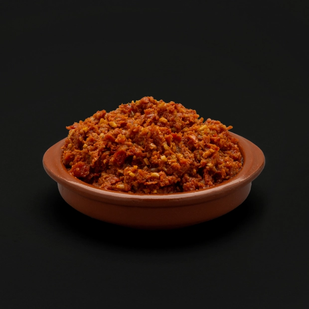 Onze Pesto Ilias is een verfijnde, kruidige spread op basis van rode pesto, olijfolie en knoflook. Perfect voor pasta’s, broodjes of als dip voor een luxe borrelplank.