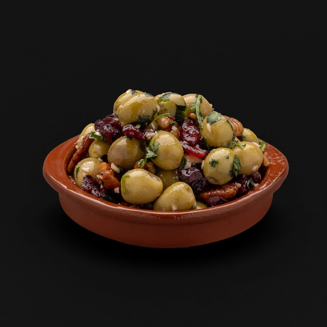 Onze cranberry pecan olijven bieden een verrassende combinatie van zoet, hartig en knapperig. Heerlijk als bijzondere borrelsnack of als originele toevoeging aan een salade. Een echte culinaire verrassing!